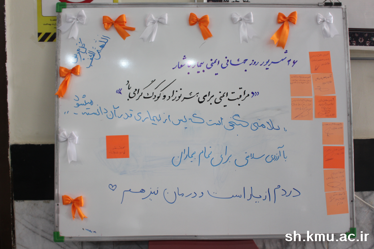 همزمان با ۱۷ سپتامبر مصادف با حضور ۲۶ شهریورماه مراسم گرامی‌داشت روز جهانی ایمنی بیماربا حضور کارشناس کنترل عفونت و ایمنی معاونت درمان و مسئولان مرکز آموزشی درمانی شفا با تقدیر از برترین بخش های درمانی در زمینه ایمنی برگزار شد.