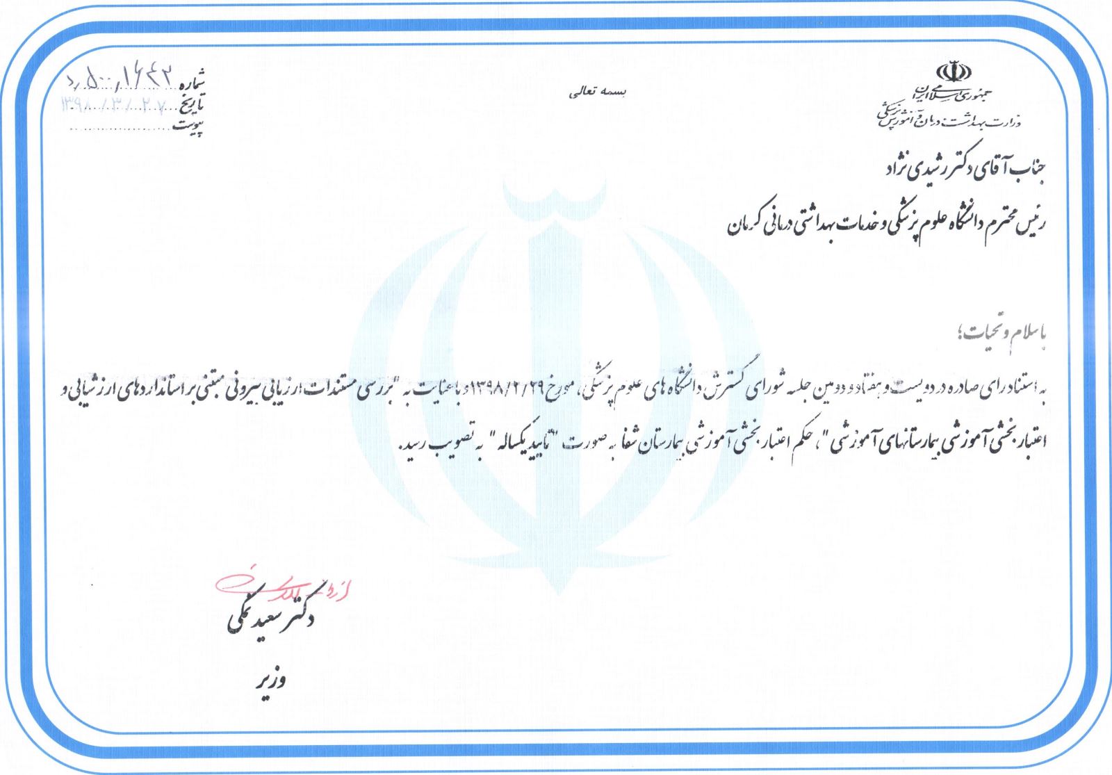 ایران، کرمان، بلوار کوثر، مرکز آموزشی درمانی شفا