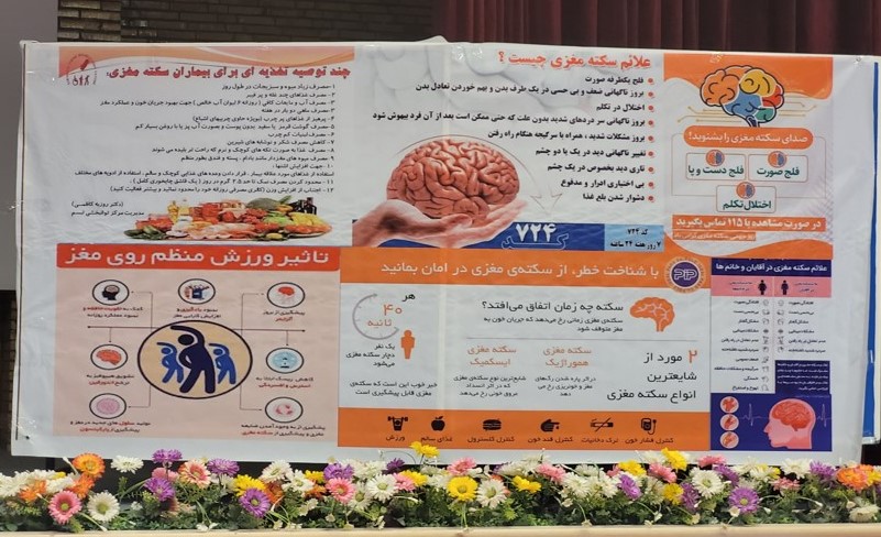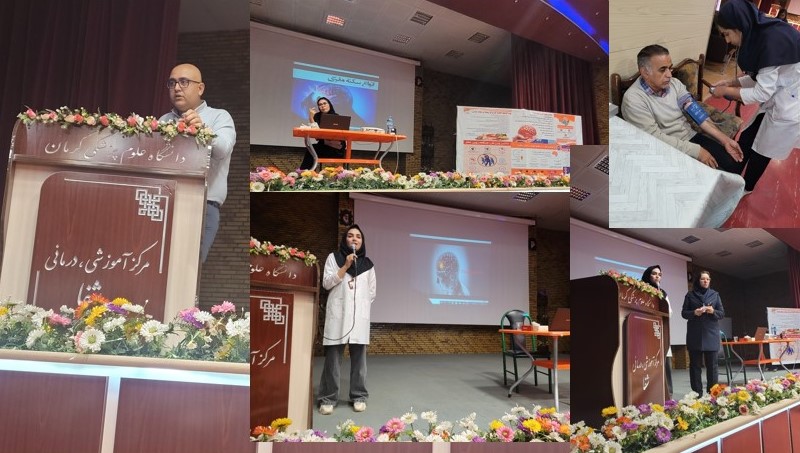 برنامه آموزش همگانی بمناسبت 7 آبانماه روز جهانی سکته مغزی در روز پنجشنبه 11 آبان با حضور آقای دکتر برزگر (عضو هیات علمی گروه آموزشی مغزواعصاب)،فراگیران ، سوپروایزر اموزش سلامت ،پرستاران واحد پرستاری ،بیماران و همراهان بیماران سکته مغزی در تالار بیمارستان شفا برگزار شد. در این برنامه آموزشی که علاوه بر ارائه پاورپوینت بصورت توضیح در مورد علائم و ماهیت بیماری-پیشگیری- درمان و توصیه های خودمراقبتی برگزار شد ، به کلیه سوالات مطرح شده مراجعین، توسط پزشک متخصص - پرستاران و کارشناس تغذیه پاسخ داده شد و توسط دانشجویان، فشارخون کلیه مراجعین کنترل و ثبت گردید.
